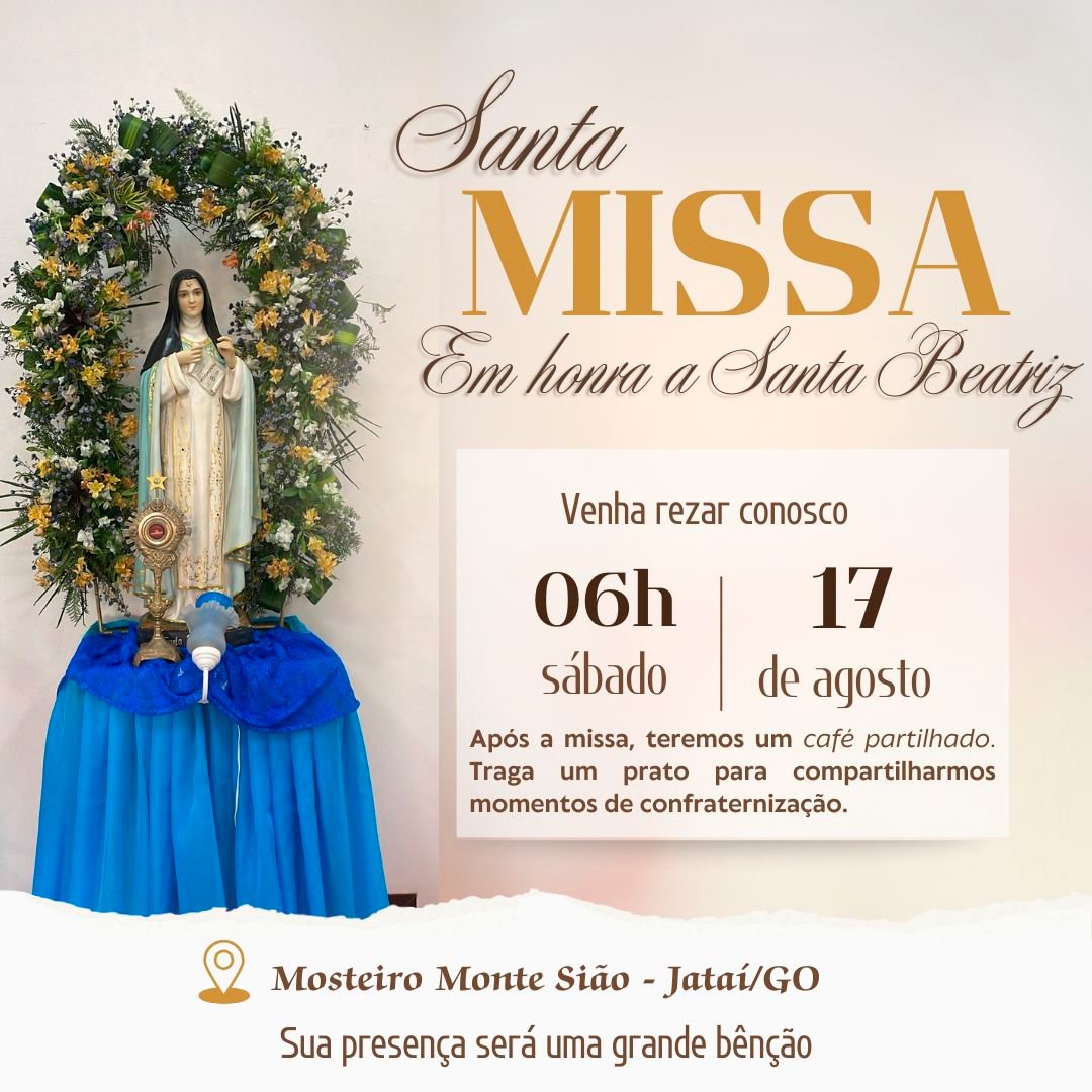 Dia do padreagosto 7, 2024Jubileu de 2025 se aproximadezembro 13, 2024 Published by siljoses1973 at agosto 16, 2024 Categories Blog Tags Share0 siljoses1973 Related postsjaneiro 29, 2026Eleição para o governoSaiba Maisjaneiro 20, 2026Missas e Hinos a Sta. BeatrizSaiba Maisjaneiro 6, 2026ORAÇÃO PELA ASSEMBLEIASaiba Mais Deixe um comentário Cancelar respostaO seu endereço de e-mail não será publicado. Campos obrigatórios são marcados com *Comentário * Nome * E-mail * Site Salvar meus dados neste navegador para a próxima vez que eu comentar.